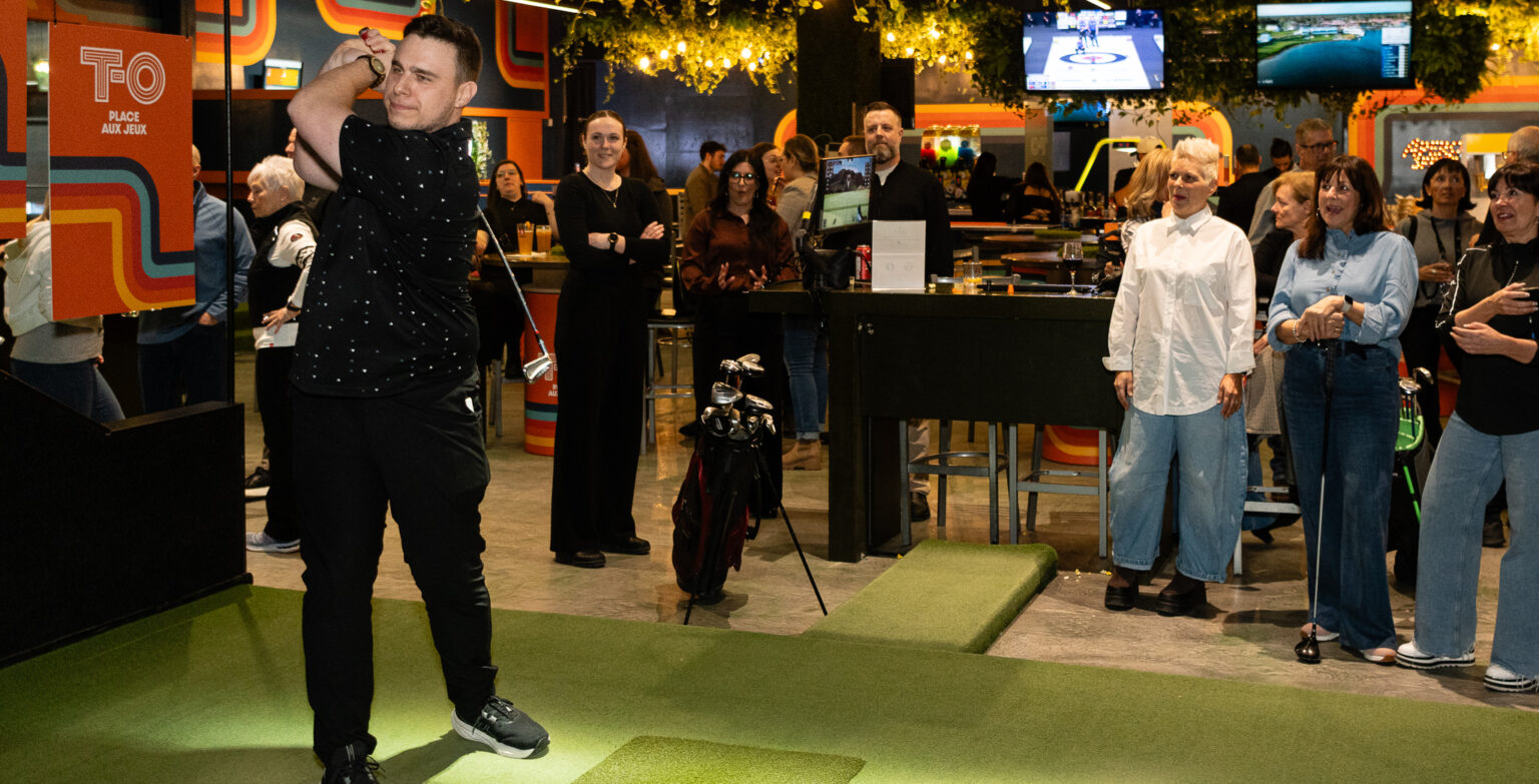 Découvrez nos installations modernes pensées pour les passionnés de golf et les amateurs de plaisir. Profitez de 5 simulateurs Trackman et 5 simulateurs ProSim pour vivre une expérience de jeu réaliste et variée. Améliorez votre précision sur notre green de putting et chipping de 3000 pi², idéal pour perfectionner vos approches. Et pour compléter l’expérience, notre resto-bar vous offre un service de boissons et de repas directement à votre simulateur.
